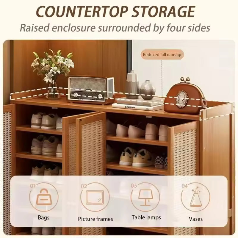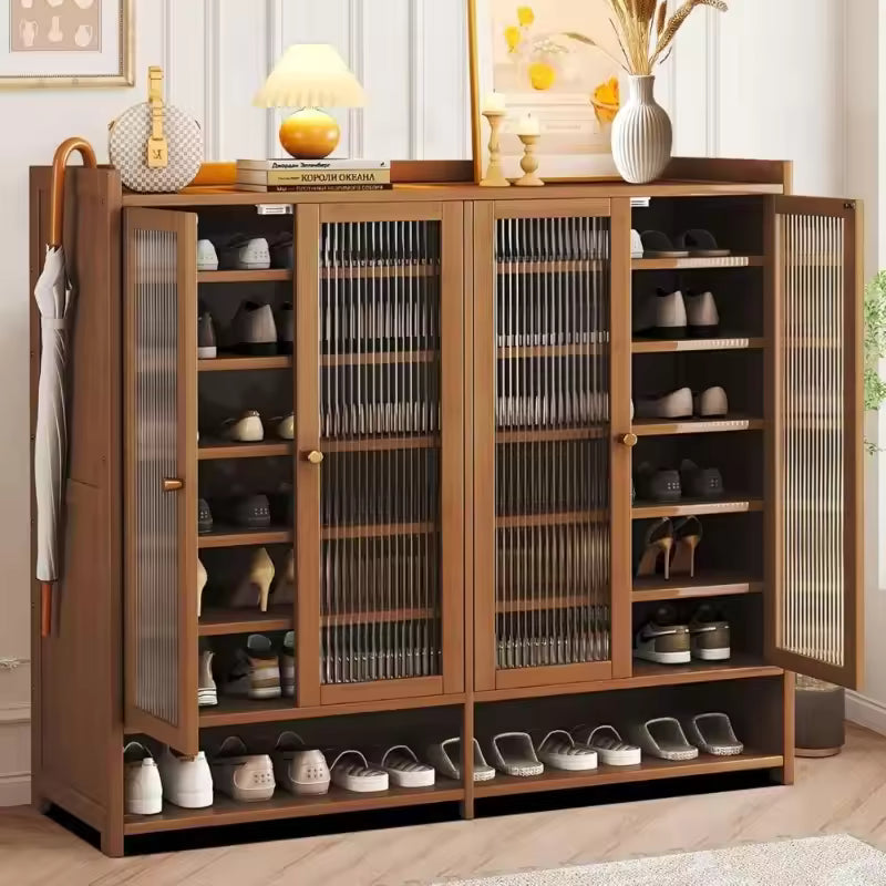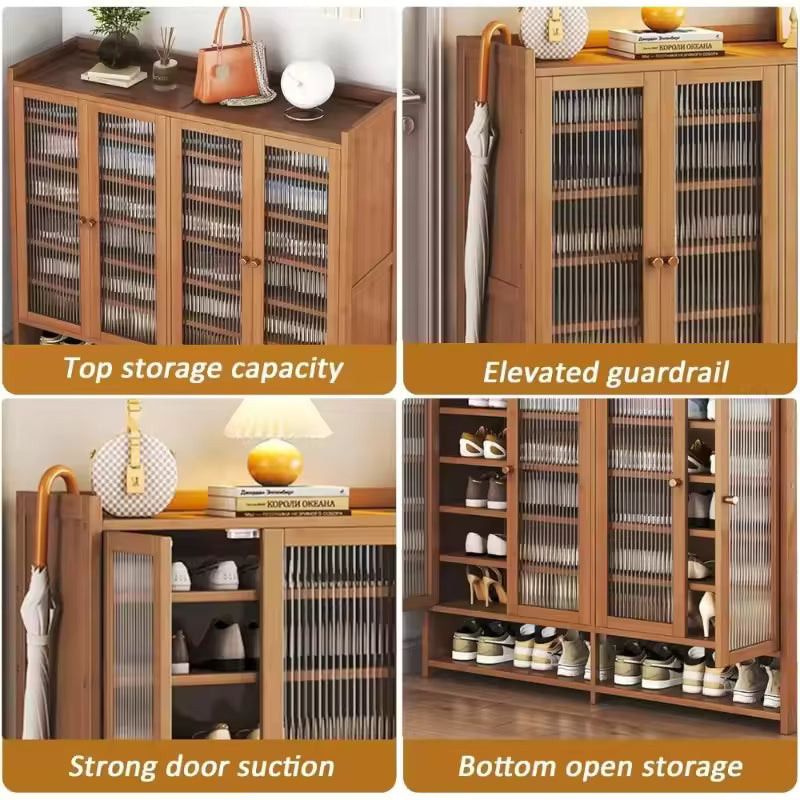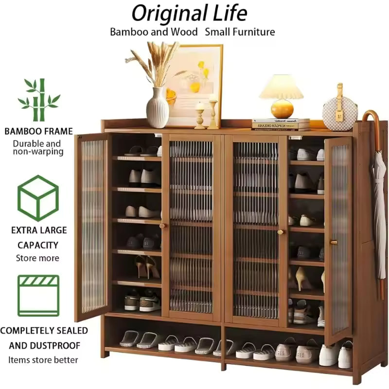 Bamboo Shoe Storage Cabinet with Doors and Multi Shelf Design for Entryway